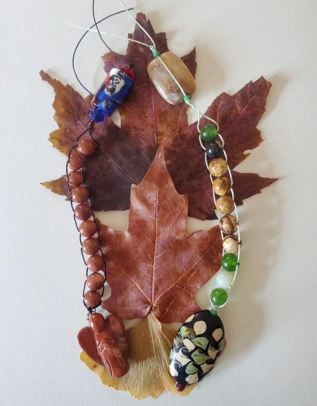 The Fall season is the perfect time to harvest the things that give us the feeling of gratefulness. We will make a strand of 10 semi-precious 8mm beads embellished with charms. The beads are strung so that they slip along the string to keep your place. We will begin with a brief history of how beads are used for spiritual purposes in 2/3 of the world’s faiths and study beads from many cultures around the world.